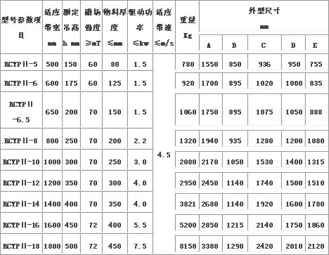 RCYP-Ⅱ系列永磁自缷式永磁除铁器主要技术参数: